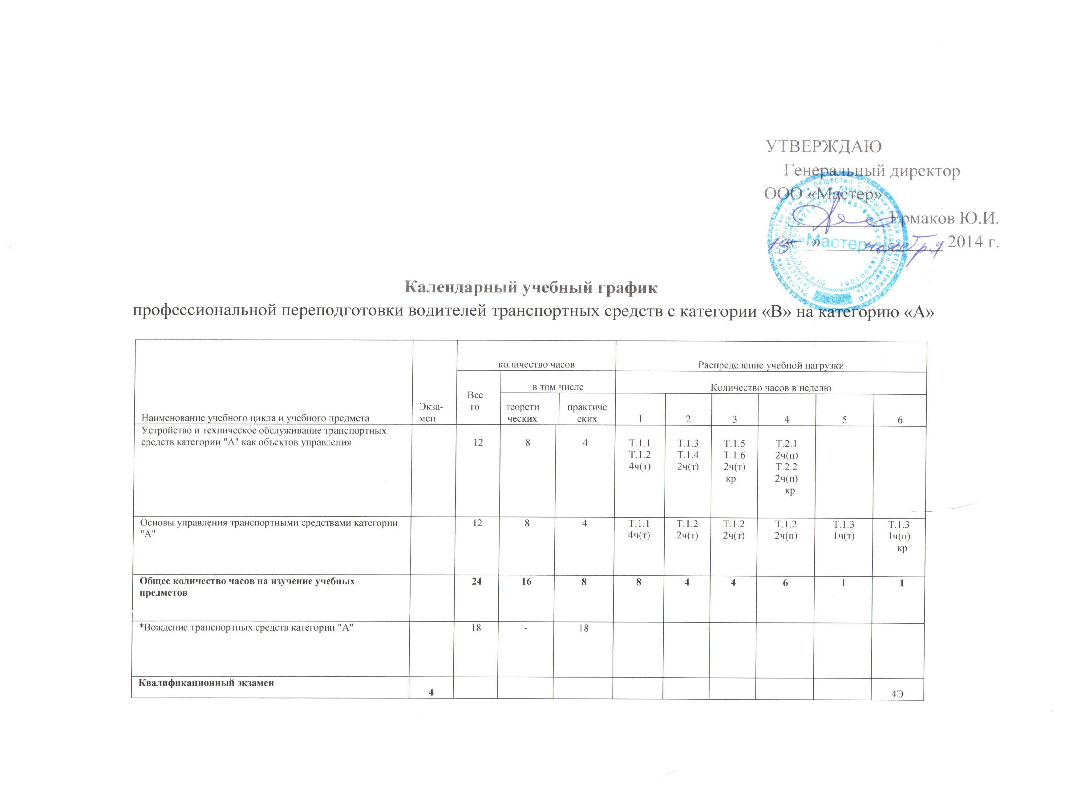 УЧЕБНЫЙ ПЛАН КАТЕГОРИИ А (с Pin-Up